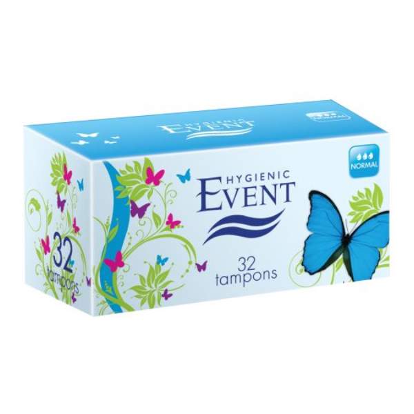 Тампоните EVENT са изработени от попиващи естествени влакна. Тяхната форма от осем нагъвки позволява равномерно разширяване на тампона, което повишава неговия попиващ ефект и надеждност. Благодарение на заобления връх и допълнителната обложка, осигуряващи по-голяма компактност и гладкост на тампона, поставянето му е лесно и безопасно.