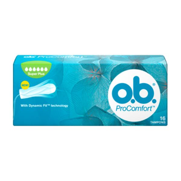 o.b.® ProComfort™ осигурява лесно поставяне и изваждане чрез покритието си SilkTouch™ и надеждна защита чрез революционната технология DynamicFit™ с 3D разширяване, която се адаптира към тялото ти след поставяне и помага за ефикасно разпределяне на течността в тампона чрез взаимно свързани каналчета. o.b.® ProComfort™ Super Plus е идеален за дни с много силно течение.
