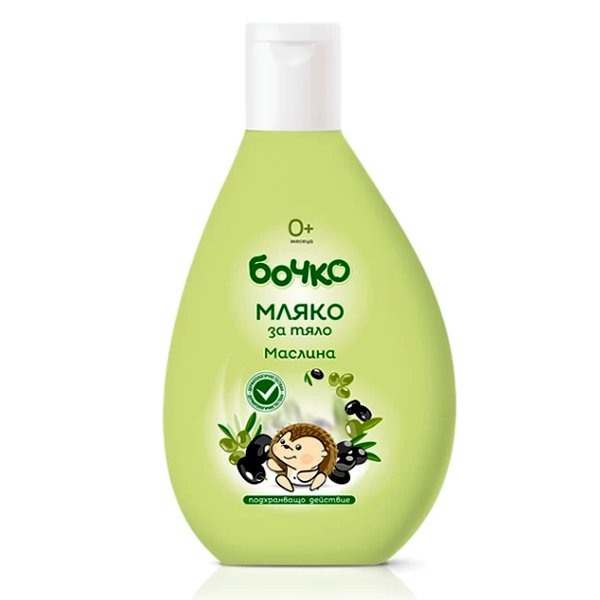 Бебешкото мляко за тяло Бочко се грижи за необходимото подхранване на деликатната кожа на бебето още от първия ден. Вложеното натурално масло от маслина подхранва кожата и я прави по бебешки мека. Добавеният пантенол задържа естествената влага в кожата и спомага за нейното постоянно обновяване. Идеално за употреба след измиване или баня.