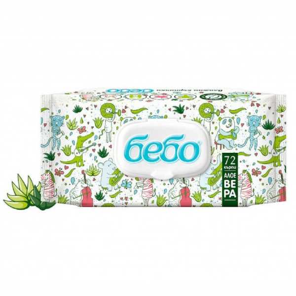 Мокри кърпички Бебо екстракт от Алое Вера с капак 72бр