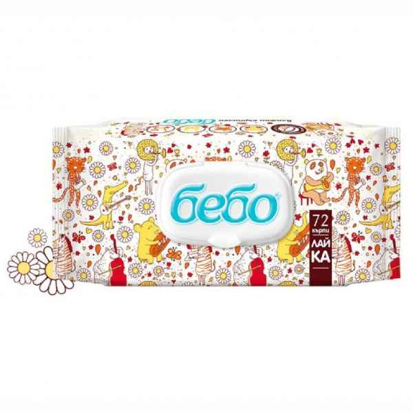 Мокри кърпички Бебо екстракт от Лайка с капак 72бр