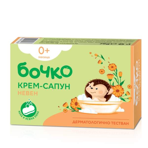 Бебешкият крем-сапун Бочко деликатно измива кожата и я оставя чиста и защитена, благодарение на билковия екстракт от невен. Крем-формулата е с омекотяващ комплекс, който поддържа кожата нежна и гладка, без да я изсушава. Подбраният хипоалергенен аромат носи успокояващото ухание на билкова градина. Прави мека и нежна пяна. Подходящ при ежедневно измиване или къпане.