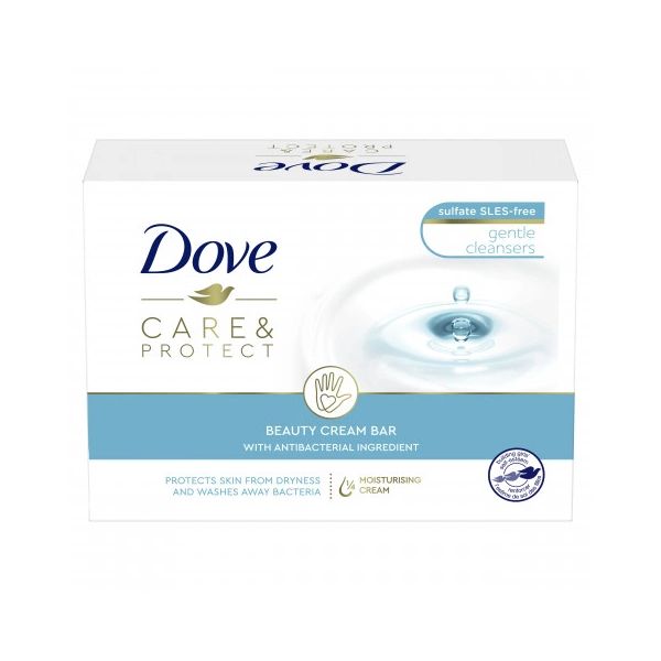 Dove Care & Protect 100g е крем-сапун, който нежно почиства кожата на тялото, като същевременно я подхранва и я дарява с мекота и свежест. Крем-сапунът на Dove Care & Protect, съдържа и 1/4 хидратантен крем, който се грижи кожата да бъде подхранена, хидратирана и овлажнена в дълбочина. Има нежна, лека и приятна текстура, която образува богата пяна, и нежно почиства кожата на тялото, без да я изсушава. Уникалният му аромат, дарява усещане за чистота и свежест през целия ден. Подходящ е за всекидневна употреба.